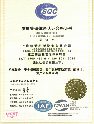 ISO quality management system certificate